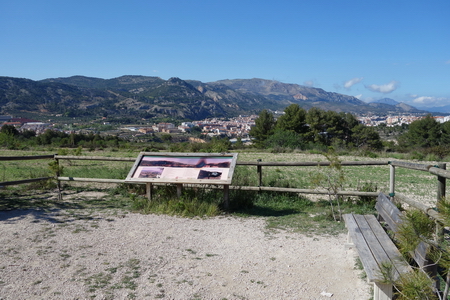 Vom Wanderweg über dem Barranco hat man einen weiten Blick über den Radweg und die Stadt Alcoi.