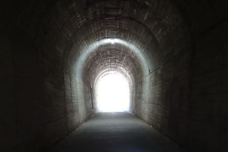 Ein langer Tunnel liegt vor uns: Glorieta del Salt, 321 m, beleuchtet.