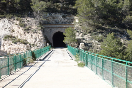 Der Radweg durchquert das Gebiet des Parque Natural del Carrascal de la Font Roja. Vor dem nächsten Tunnel (1013 m lang) geht es über das Viadukt "Sant Antoni".