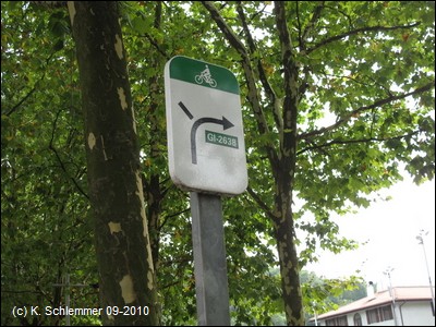 In Lezo folgt man der Radwege-Beschilderung in Richtung Errentería. Der Radweg folgt zunächst der Straße.