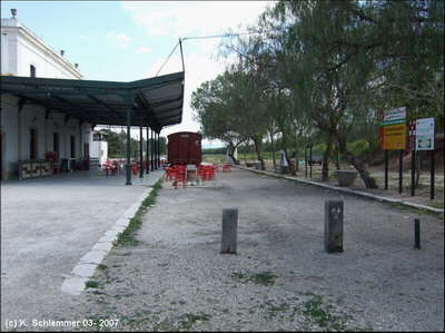 Noch ein Stück vorbei an einem Industriegebiet, dann erreicht man den Bahnhof von Lucena, Kilometer 99 der Vía Verde.