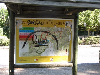 Wir starten am Bahnhof in San Martín. Die beschmierte Infotafel ist nicht mehr hilfreich, Wegweiser fanden wir keine.