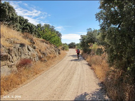 In der kleinen Gemeinde San Martín de Valdeiglesias (ca. 8000 Einwohner.), in den Bergen 70 km westlich von Madrid, beginnt ein Radweg auf einer nie ganz fertiggestellten Bahnlinie. Dieser "nicht ausgebaute Radweg" entlang des Río Alberche, für alle Radler gut befahrbar, zeichnet sich durch die besondere landschaftliche Schönheit aus. Der Río Alberche, ein Nebefluss des Tajo, durchquert die Täler der Ausläufer der Sierra de Gredos. In seinem Verlauf ist er mehrfach aufgestaut und schlängelt sich danach im Unterlauf durch eine weite Wiesenlandschaft. Nach über 180 km erreicht er schließlich die Stadt Talavera de la Reina, wo er in den Rio Tajo mündet. Die Auen um den Ort Aldea del Fresno werden auch heute noch umgangssprachlich als "Playas de Madrid" bezeichnet, da viele Wochenendausflügler aus der Großstadt hier Erholung suchten.