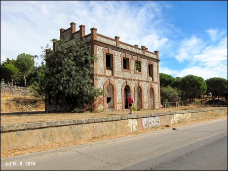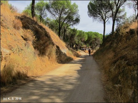 Man folgt der Straße, dann dem breiten Fahrweg in östlicher Richtung. Der Charakter einer Bahntrasse ist unübersehbar. Pelayos de la Presa ist schnell erreicht, hier hat man Gewissheit: