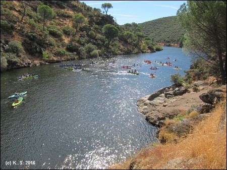 Aber auch auf dem Fluss macht es Spaß: ein Heer an Paddlern tummelt sich in bunten Booten auf dem Wasser. Weiter abwärts ist es wieder ruhiger. Vorsicht! Der Wegrand ist nicht gesichert!