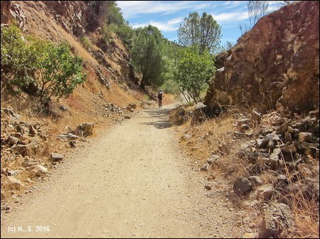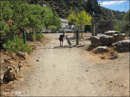 .....und ein Einschnitt in den Felshang; dann verrät uns die Schranke das nahe Ende des Radwegs.
