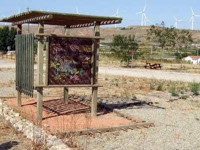 Eine holprige Piste erwartet uns auf der anderen Seite. An einem öden Rastplatz neben der Autostraße informieren uns einige Tafeln über die römischen Ursprünge der Region und die archäologischen Ausgrabungen (Cerro Sorbón, keine Besichtigungsmöglichkeit laut Führer).