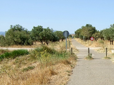 Etwas kräftiger aufwärts führt nun die Trasse, schön asphaltiert, in Richtung auf die Berge zu.