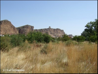 Steile Felswände begleiten uns bis nach Quel, über der Stadt thront eine alte Burg