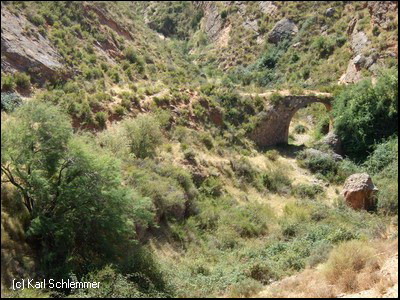 Und wieder geht es über den Fluss: ein breites Flussbett ohne Wasser zu dieser Jahreszeit