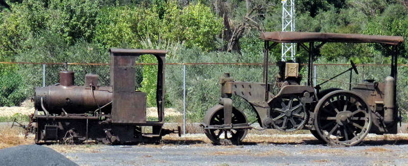 Der Ort mit seiner großen Kirche liegt etwas abseits der Bahnstrecke. Weiter talwärts neben der Trasse kommt man an einem Lager für alte Maschinen vorbei - fast ein Museum!