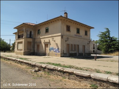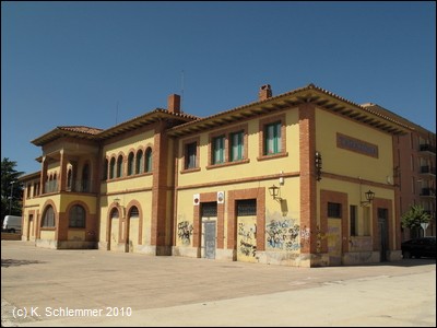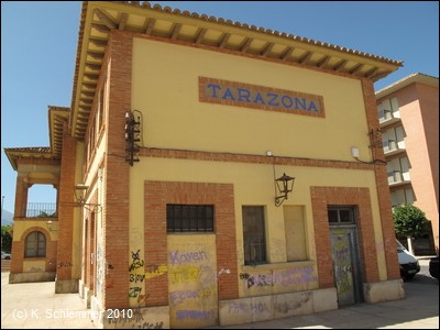 Im Nordosten der Stadt Tarazona liegt der alte Bahnhof. Das Gebäude scheint leer zu stehen, die üblichen Schmierereien zieren die Wände - wie so oft.
