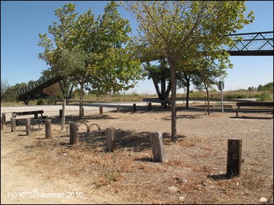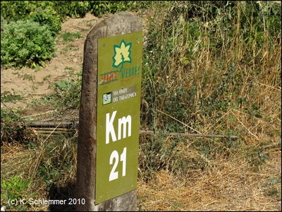 Die Rastplätze sind eher von diskretem Charme, aber der Schatten der riesigen Bäume ist willkommen in der Sommerhitze. An der Beschilderung gibt es nichts auszusetzen.