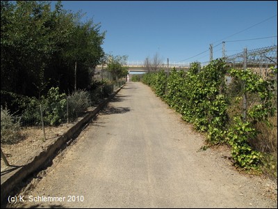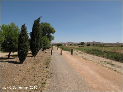 Von Cascante aus geht es wieder kerzengerade leicht bergab. Die Installationen des Radwegs scheinen etwas in die Jahre gekommen, Vandalismus tut das Übrige dazu.