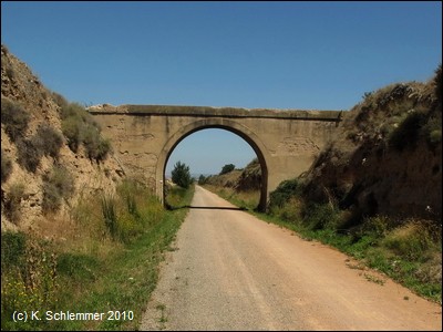 Wieder unter einer alten Brücke durch, dann wird die Autobahn A-68 unterquert. Noch einmal folgt eine Unterführung.
