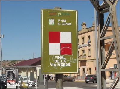Die Beschilderung ist Vías- Verdes- konform und gut zu erkennen, wenn sie nicht durch Vandalismus zertstört ist.