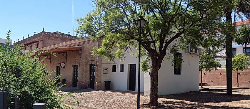 Abgeschlossen hinter einem Zaun liegt der ehemalige Bahnhof von Valverde del Camino.
