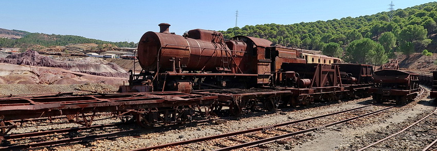 Die alte Bahnstrecke ist hier noch nicht zu Ende. Sie führt weiter in Richtung auf die Berge zu den riesigen Tagebauanlagen am Río Tinto. Diese Strecke ist nur teilweise ausgebaut. Aber man kann der Trasse noch einige Kilometer folgen. Wie es danach weitergeht, wird eine zukünftige Erkundung zeigen, denn der Weiterbau ist (09/2018) bereits im Gang: Vía Verde del Riotinto, weitere 35 km könnten einmal entstehen.