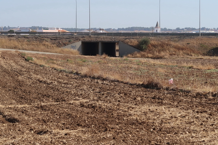 Verbranntes Land: Trostlos wirkt der Rastplatz jenseits der Autobahn A-49 bei San Juan del Puerto, dem Startpunkt der Via Verde de los Molinos del Agua.
