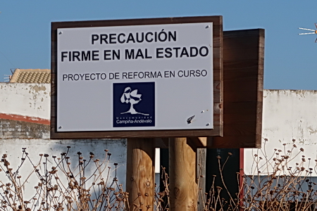 Streckenweise hat die Fahrbahn stark gelitten! In Trigueros ist auch der Pflegezustand mangelhaft und die Fahrbahn eingeengt.