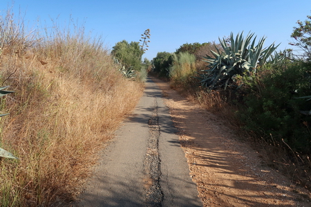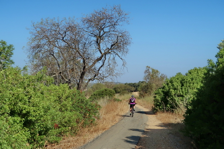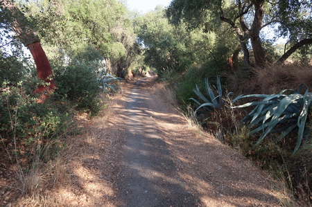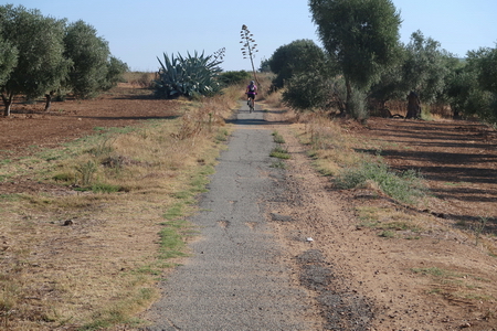 Durch Olivenplantagen und die südländische Vegetation folgt man der alten Bahnstrecke.