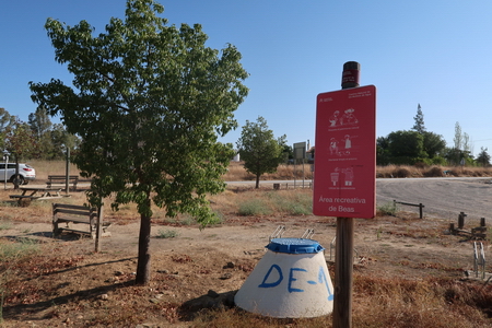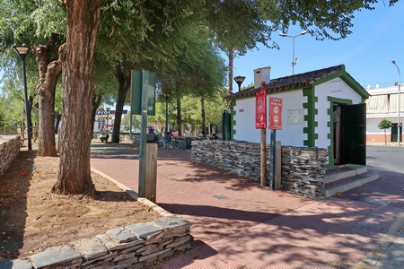 Rastplatz am abgerissenen Bahnhof Beas und Abzweig in den ca. 3 km entfernten Ort. In dieser Region befinden sich die kleinen alten Getreidemühlen, deren Turbinen vom Wasser des Arroyo Renegoso angetrieben wurden**: Molinos del Agua.