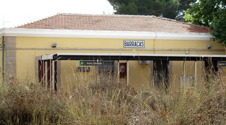 Auch die alten Lokschuppen sind erhalten. Hier traf die Strecke der Minenbahn auf die Bahnstrecke nach Alfambra, die nie fertiggestellt wurde. Der Rastplatz ist ungepflegt, ein Schild liegt zerstört am Boden.