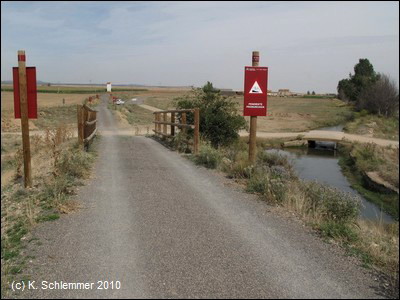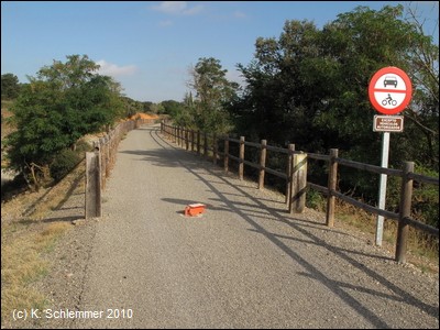 Es geht wieder eimal über eine Brücke, die Strecke der RENFE begleitet uns linker Hand. Ein Weg kreuzt die Trasse.