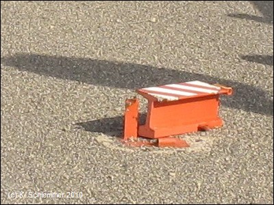 Vorsicht vor den umgeklappten Sperren auf der Fahrbahn!
