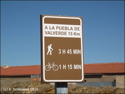 Nächster Zwischenstopp ist La Puebla de Valverde, ein kleiner Ort mit knapp 500 Einwohnern. Die Strecke ist gut ausgebaut, die Querwege haben Stoppschilder!