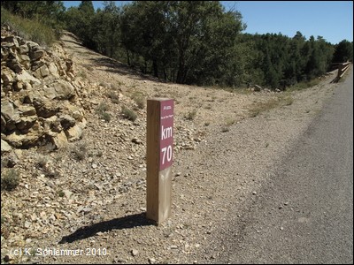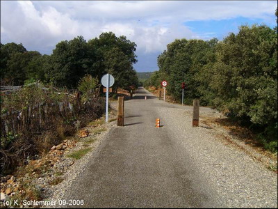 Wir verlassen Sarrión in nordwestlicher Richtung auf dem neu asphaltierten Radweg. Auch hier ist Vorsicht geboten vor den umgeklappten Pfostensperren!