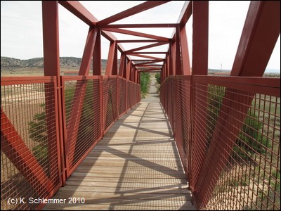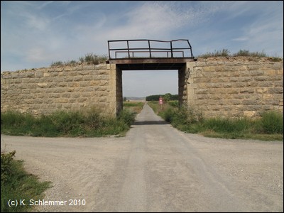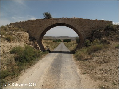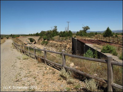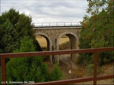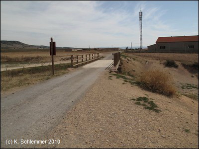Eine kleine Bücke führt über einen trockenen Bachlauf. Wieder wird die Bahnstrecke Valencia-Zaragaza überquert, eine Metallbrücke wurde hierfür gebaut.