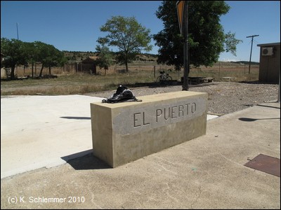 Der alte Bahnhof von El Fraile liegt versteckt auf der anderen Seite der Bahnlinie. Apeaderos de la Parra (Haltepunkt). Achtung auf die Sperren in der Mitte der Fahrbahn!
