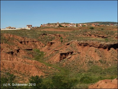 Oberhalb am Berg, in einer durch Erosion zerfurchten Landschaft liegt der kleine Ort Valdecebro. Bei Gewitter können unglaubliche Wassermengen durch die Gräben herabstürzen, wie wir in der Vergangenheit erleben konnten.