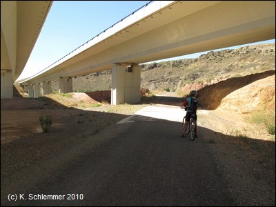 Die beiden Fahrspuren der Autobahn kreuzen nochmal die Vía Verde - ein futuristisches Szenario!