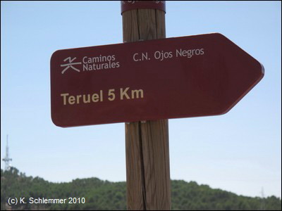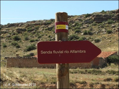 Danach zweigt der Weg entlag des Rio Alfambra ab, der auch als Vía Verde de Valfambra (= Val de Alfambra)beschrieben ist. Die Beschilderung ist neu.