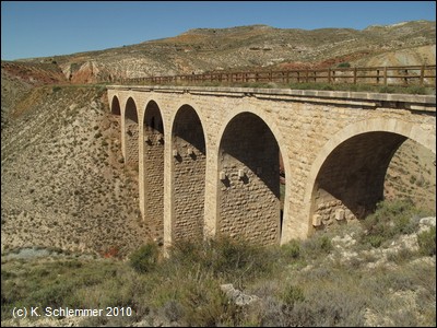 Bei Kilometer 55 vor Ojos Negros wird der Rio Alfambra überquert. Zuerst geht es unter der Straße durch, dann auf der alten Brücke über den Fluss.