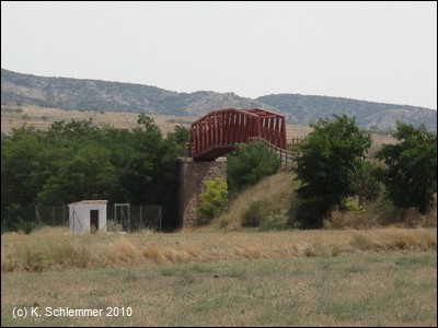 Die Relikte der alten Bahnstrecke sind nicht zu übersehen. Der Fluss erscheint hier noch als kleines Rinnsal.