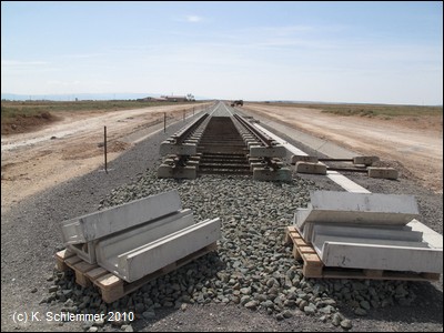 Eine neue Bahnstrecke ist im Bau und kreuzt die Vía Verde.