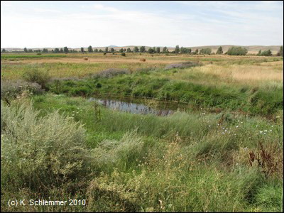 Befestigungen der Bahnstrecke sind noch gut erhalten. Der Fluss begleitet uns durch die schier endlose Ebene.
