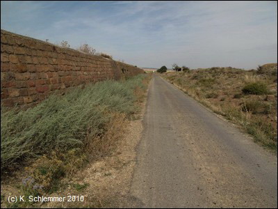 Der alte Brunnen existiert noch. Vorbei an den alten Ruinen geht es durch die staubige Ebene.