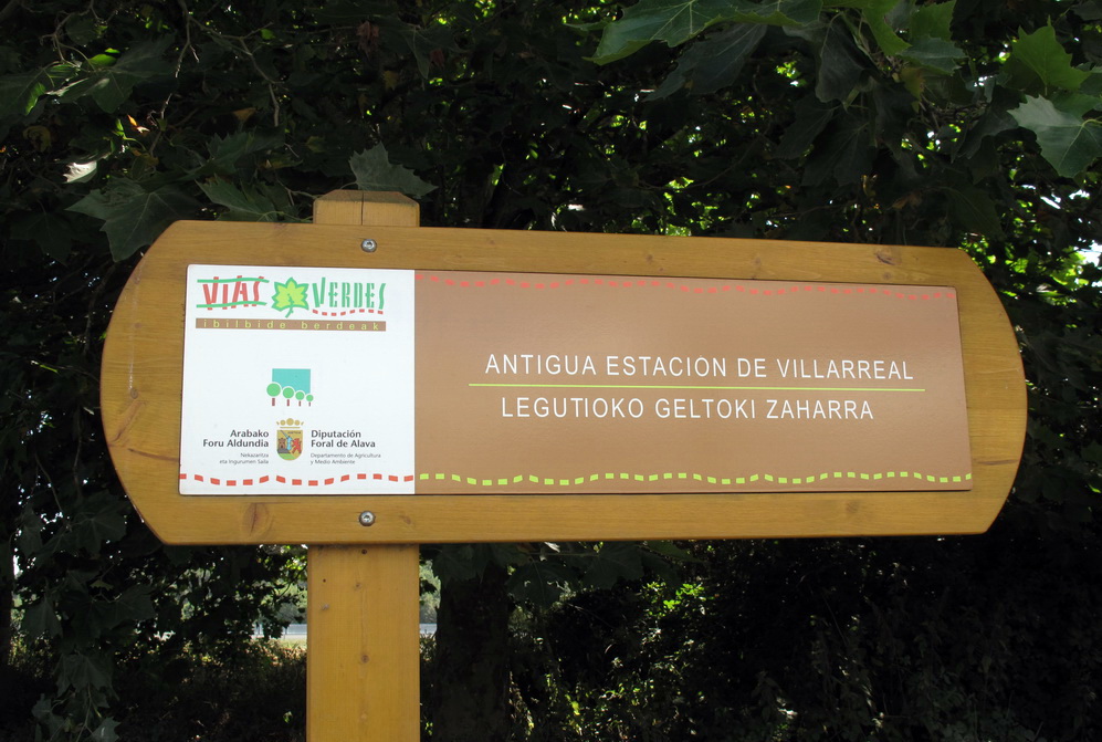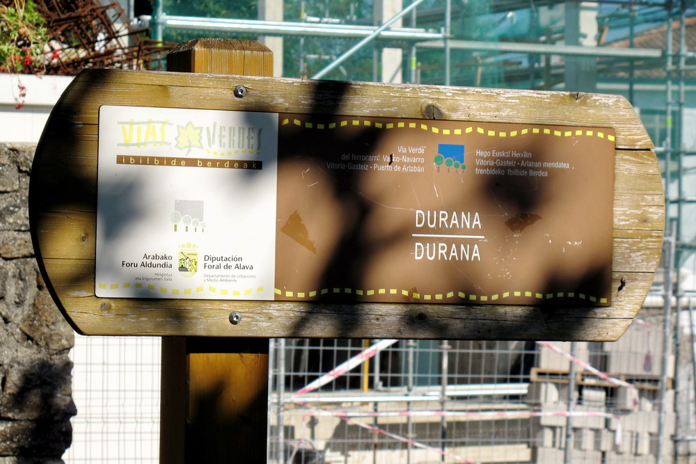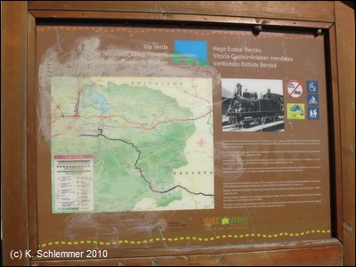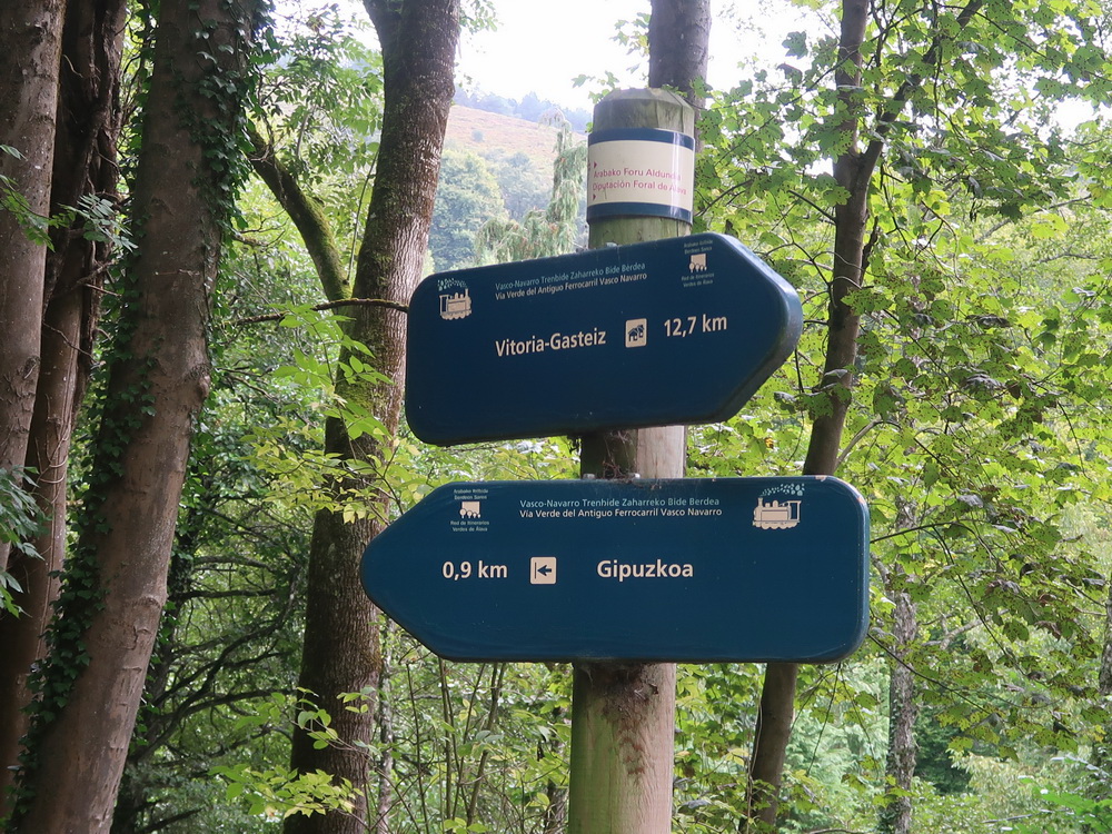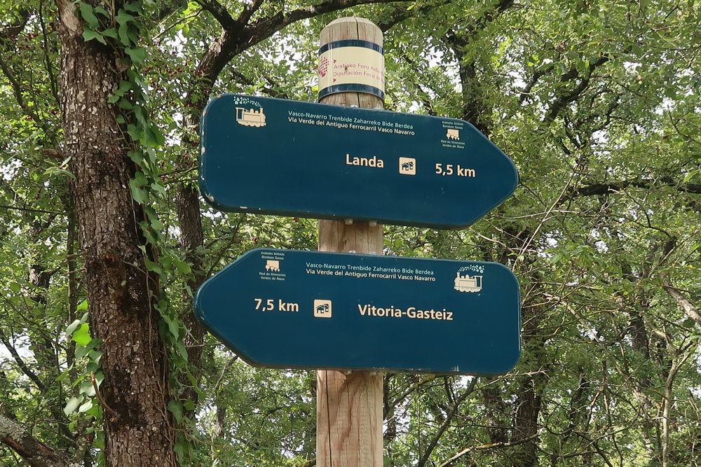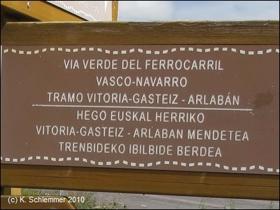 Die Strecke ist als Vía Verde del Ferrocarril Vasco-Navarro beschildert und nicht als Vía Verde del Zadorra.