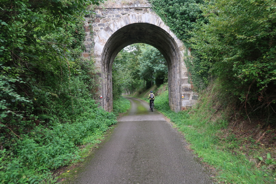 So folgen wir der Gi-3310 und treffen nach wenigen Metern auf die alte Bahntrasse. Doch diese Straße ist eine Sackgasse, und so heißt es zurück zur Landstraße.
