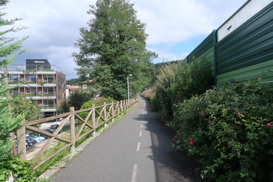 Jenseits der Passhöhe von Arlabán gibt es zunächst keinen Radweg mehr, ein Ausbau hat bisher nicht stattgefunden. Wer weter will muss auf der Straße fahren, empfohlen wird die GI-627. Im September 2024 war diese Strecke wegen Bauarbeiten gesperrt. Wir nahmen die Alternativstrecke über Leintz-Gatzaga. Starkes Gefälle erwarten wir ohnehin, denn die ehemalige, nicht ausgebaute Bahnstrecke soll 14 Brücken und vier Tunnel enthalten. So bleiben 8,7 km auf der Autostraße mit reichlich Verkehr (ggf. hin und zurück.), als Radtour für Familien mit Kindern weniger geeignet. Die offizielle Seite hofft auf baldigen Ausbau der Trasse, seit 2010 hat sich hier aber nicht bewegt, weitere Infos haben wir nicht gefunden.