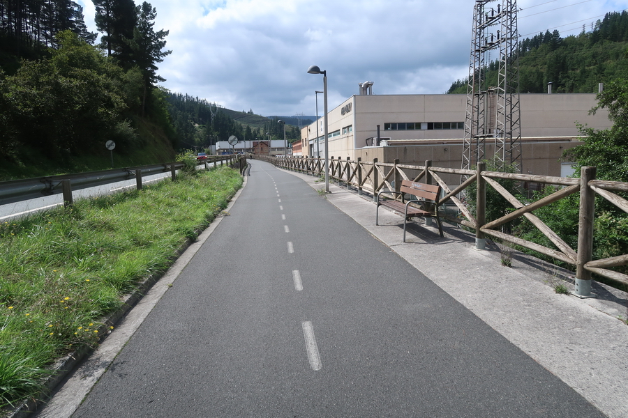 Der nächste Ort, auch dominiert von Industieanlagen , ist Aretxabaleta. Der Radweg wechselt auf die andere Seite der Autostraße Gi-627.