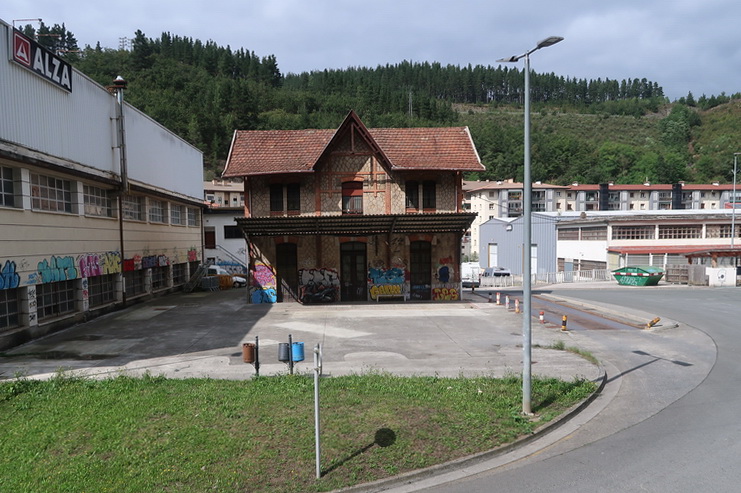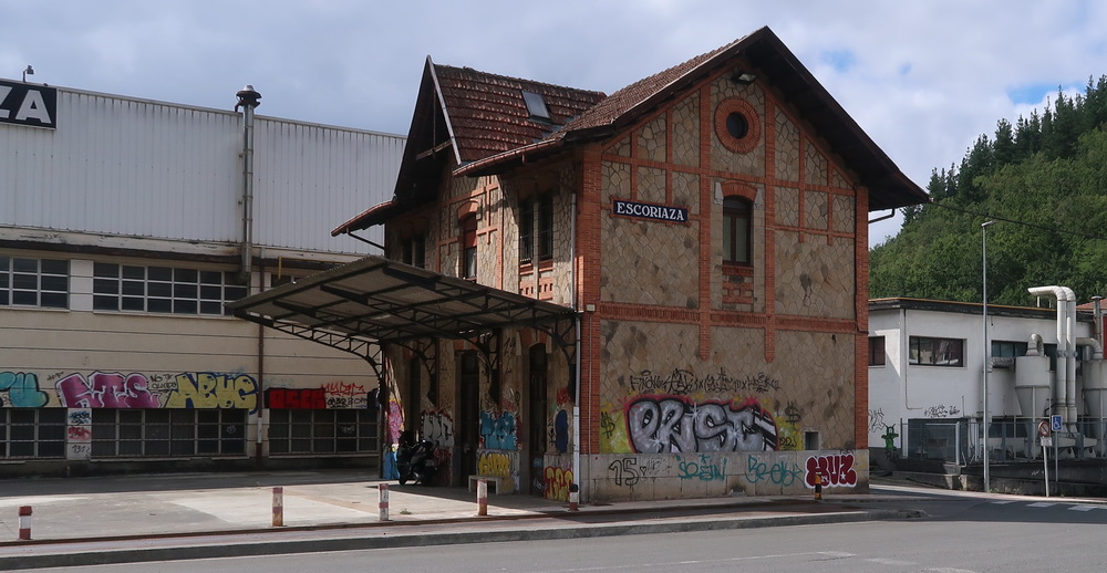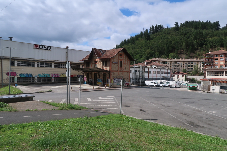 Dann, etwas verloren auf einem großen Parkplatz zwischen den Industriebetrieben, steht das kleine Häuschen des Bahnhofs von Eskoriatza.