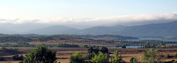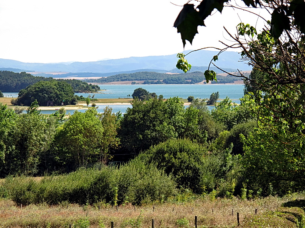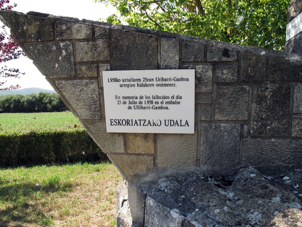 Die Landschaft öffnet sich, der Blick auf den Stausee von Ullibarri wird frei. Am Denkmal für die 1958 im Stausee ertrunkenen Jugendlichen.