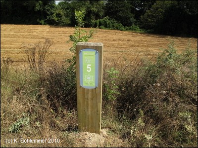 Wieder folgt ein langer, flacher und kerzengerader Einschnitt in Landschaft. Wir erreichen Kilometer 5.
