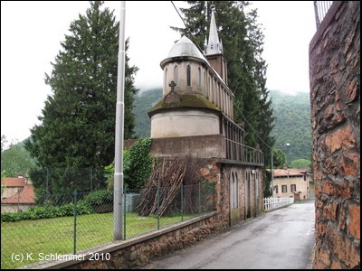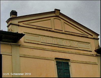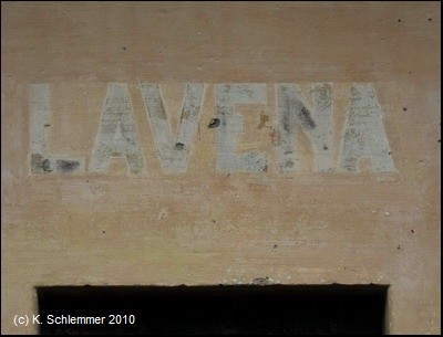 Gleich dahinter der alte Bahnhof von Lavena - die Inschrift ist noch zu erkennen.
