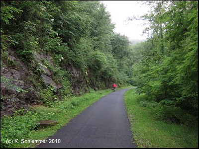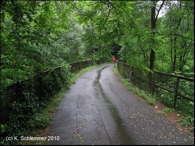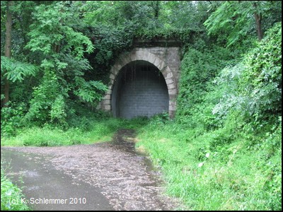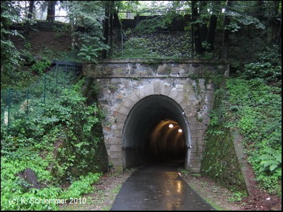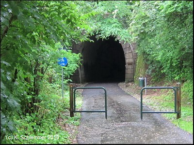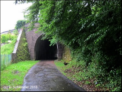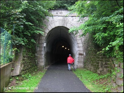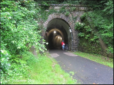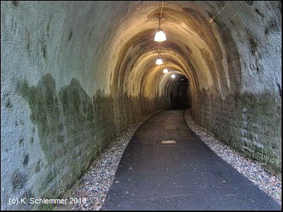 Unweit davon beginnt der Radweg auf der alten Bahntrasse. Sofort geht es durch den ersten Tunnel.